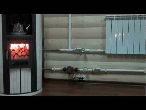 - Он работает, как обычная дровяная печь, отапливая собой помещение, в котором установлен.